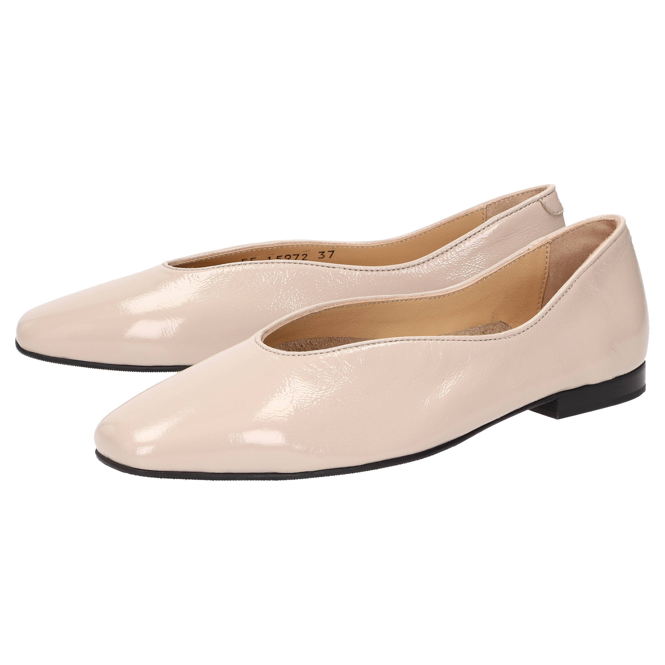 Dieser Ballerina überzeugt durch seine modische Optik und das elegante Lackleder. Das hochwertige Glattleder sorgt für einen stilvollen Auftritt und unterstreicht den femininen Charakter dieses Damenschuhs. Die normale Weite (G-Weite) bietet angenehmen Tragekomfort und passt sich optimal an den Fuß an.