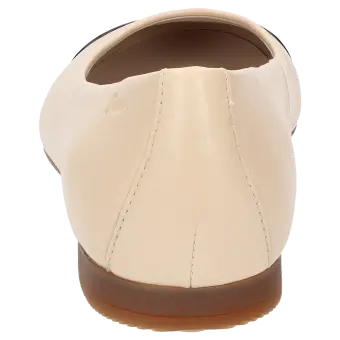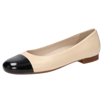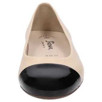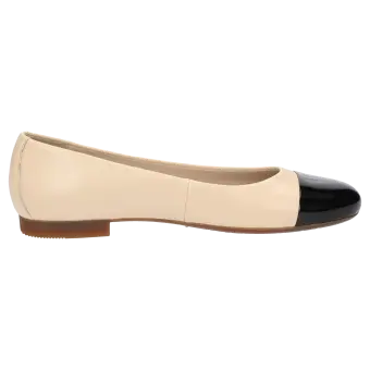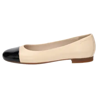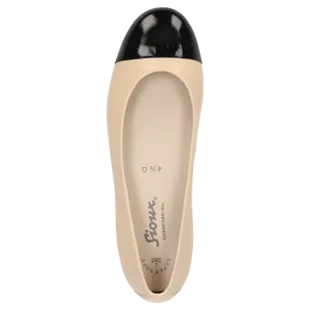 Women's ballerina with a stylish, patent leather (lambskin) toecap and flat heel; the upper is made of lamb nappa leather. This model is lined throughout with leather and features a slightly cushioned insole. A thin and flexible rubber sole rounds off this comfortable Sioux shoe!