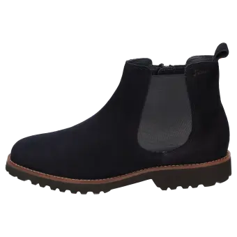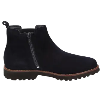 Women's Chelsea boot by Sioux in a broad H width with elasticated gusset on one side and inner zip as well as a loop at the heel. Made of a fine suede (lambskin). This shoe is leather-lined and features stretch fabric lining in the forefoot. Suitable for sufferers of Hallux Valgus (bunions). Removable, leather-covered insole with soft cushioning - can be replaced with a bespoke insole. Lightweight profiled rubber sole with a striking leather welt.