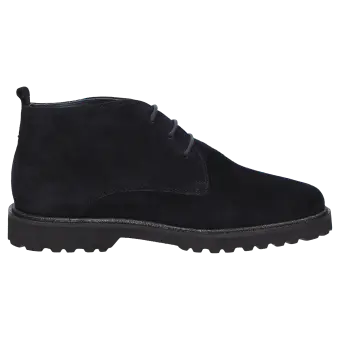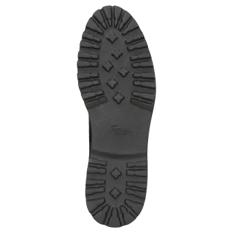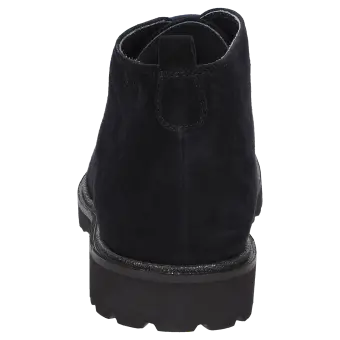 Women's lace-up ankle boot in a comfort width (H) with a loop at the heel. Crafted from extremely supple lamb suede and lined with leather as well as a stretch fabric in the forefoot. These are bunion-friendly shoes! Removable, leather-covered insole with soft cushioning - can be replaced with a bespoke one. This model features a lightweight, autumnal-looking, cleated rubber sole and an on-trend glittery welt.