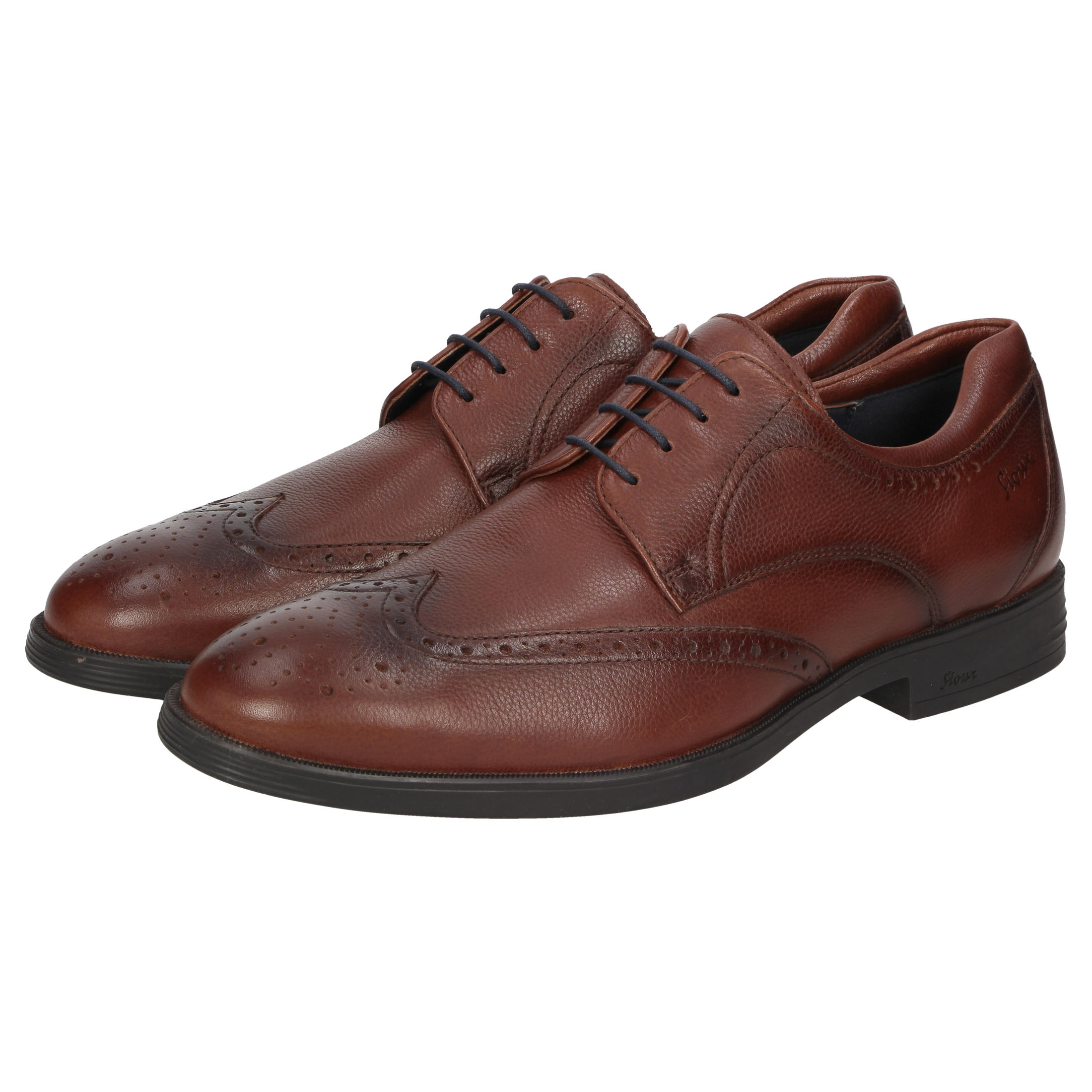 Timeless lace-ups for work made from calfskin nappa with rubber sole in comfortable H width. With fashionable wing-tips and padded removable insole.