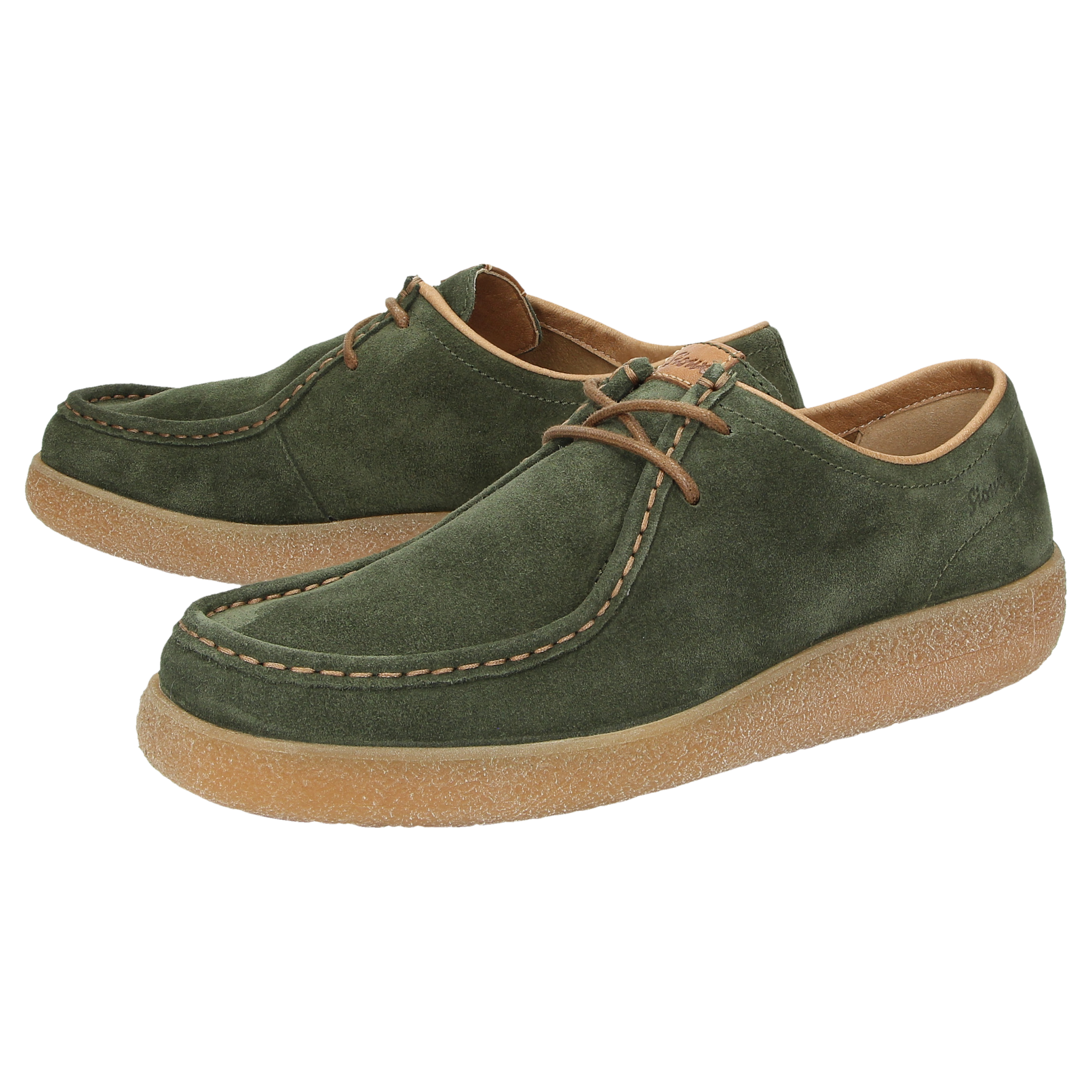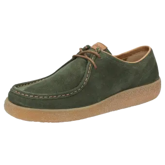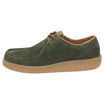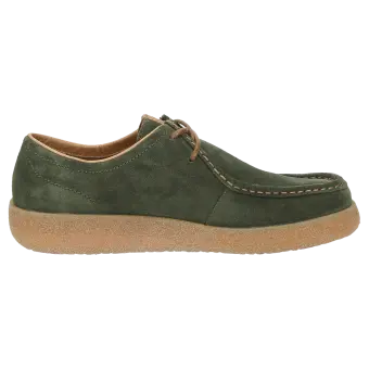 A contemporary take on the Grashopper style: men's sporty lace-up made of waxed calf suede and featuring a casual crepe-effect rubber sole. This model is lined with a modern microfibre fabric, as is the footbed. The standard width (G) ensures a roomy fit at the toes, and the cushioned footbed can be replaced with a bespoke insole.