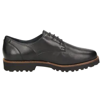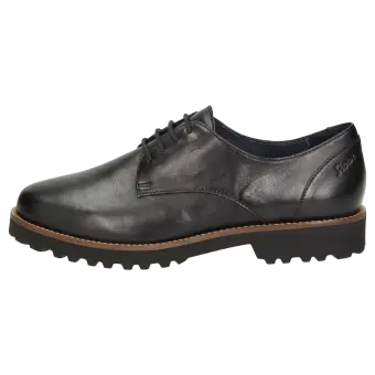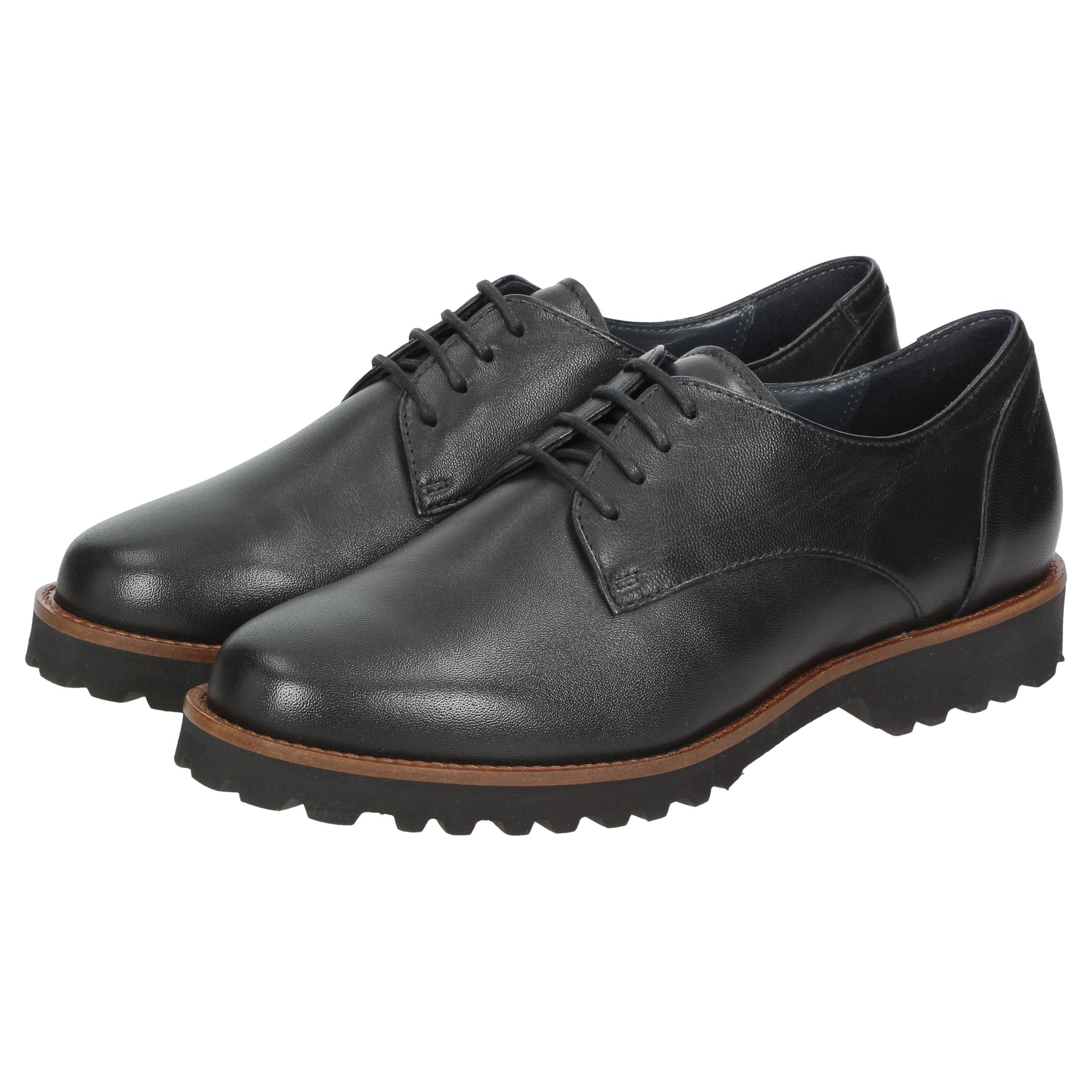 Women's lace up shoe by Sioux featuring a boyfriend style and made of extremely soft lambskin in a H-width fitting. Lined with calfskin and with a stretchy textile lining at the front section. Suitable for those suffering with hallux valgus! Removable, calfskin-covered insole with soft cushioning - own inlays can be used. Autumnal, lightweight treaded rubber sole with striking leather edging.