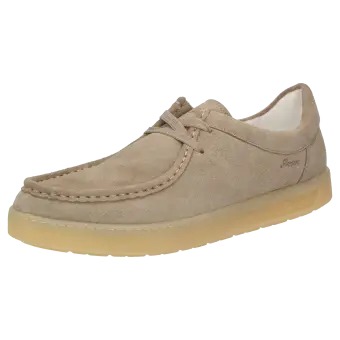 This lace-up shoe is the perfect choice for men who appreciate elegant design and maximum comfort. The fine calf suede offers a pleasantly soft feel and highlights the high-quality look of the moccasin. The standard width (G width) ensures an excellent fit, making this shoe ideal for everyday wear or special occasions. The flexible rubber sole supports both a light and secure walking sensation. Inside, the lace-up shoe impresses with a comfortable removable footbed that can be easily replaced with your own insoles if required. Thanks to its low weight, the shoe remains comfortable even after many hours of wear. High-quality materials and careful workmanship guarantee durability, making this moccasin a must-have for style-conscious men.