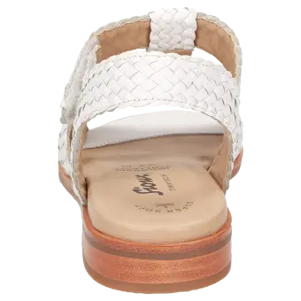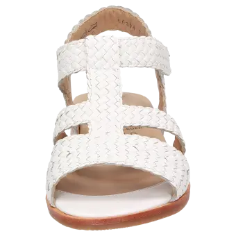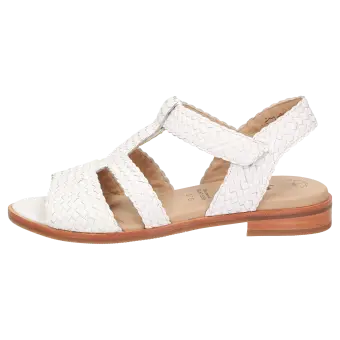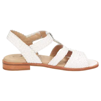 Elaborately braided goatskin leather summer sandals with a very soft, padded leather insole. A Velcro fastening enhances the fit, and the shock-absorbing sole with distinctive ripple profile provides added comfort when walking.