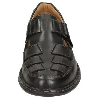 Men's summery flat slip-on made of premium calfskin in a standard G-width fitting, featuring hand-sewn stitching on the sole, and adjustable Velcro fastening. Soft, padded removable insole, covered with a microfibre fabric, that can be taken out and swapped with your own insole. The airy openings and cushioning PU rubber sole are perfect for walking.