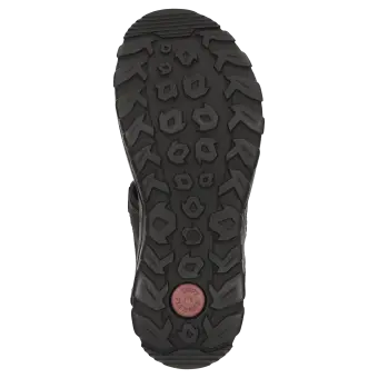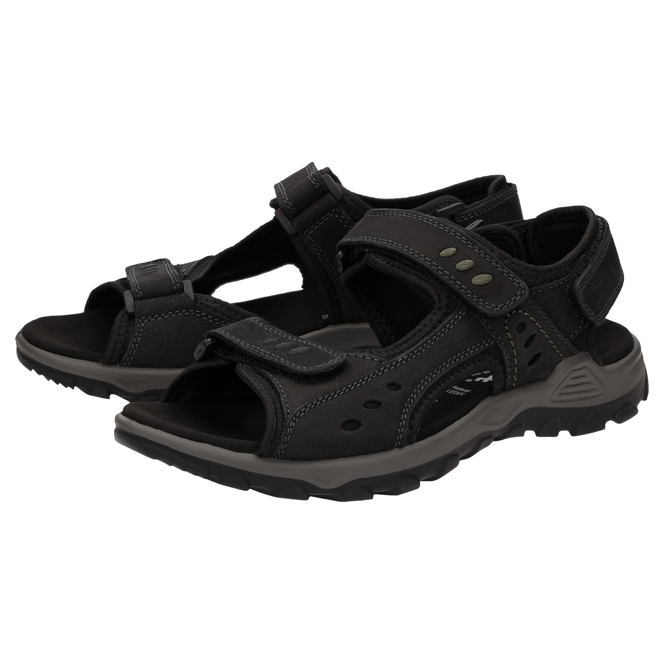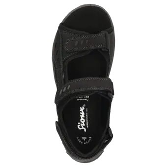 Sioux also has attractive trekking sandals for men: the striking upper is made of nubuck leather (calfskin), and the sandal is lined with a padded neoprene material. The soft microfibre fabric used for the insole perfectly complements the soft air-cushioned lug sole. This model can be adjusted to fit the foot perfectly due to the Velcro fastenings over the forefoot and instep.