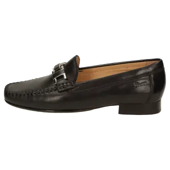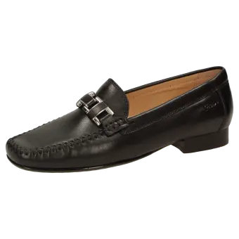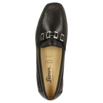 Women's moccasin style slip-on in F-width fitting made of soft lamb nappa. Perfect fit and timeless elegance, featuring an eye-catching combined metallic/leather trimming. Calfskin lining and soft, fully padded calfskin insole. Soft and fine rubber sole with a flat heel. A typical women's moccasin by Sioux.