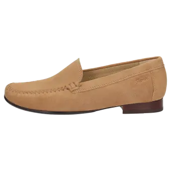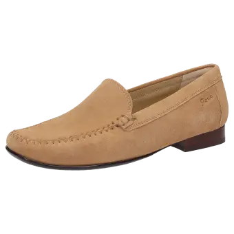 Comfort is ensured with this moccasin-style slip-on in an F width made of supple goat suede. Perfect fit and timeless elegance. It is lined with leather and features a full-length leather cushioned insole. Flexible and thin rubber sole with a flat heel. Women's typical moccasin by Sioux: a long-standing bestseller.