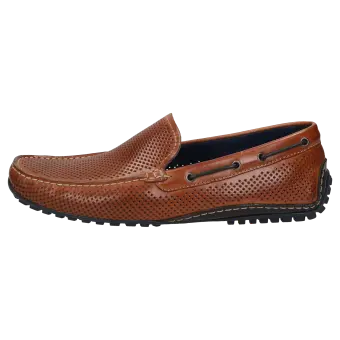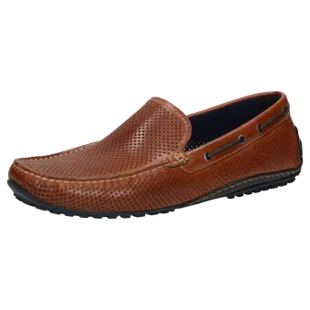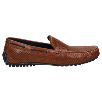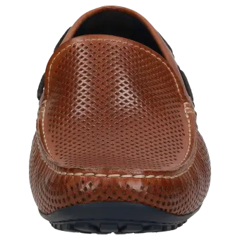 Men's sporty moccasin-style loafers made of top-quality nappa calfskin leather, which is perforated to keep feet cool and airy in the summer. This model is lined with leather and crafted in a standard G width. Known also as a 'Driving Moc', this model features a pedal-gripping rubber sole, wraparound protected heel and comes with a removable, leather-covered insole for comfortable wear.