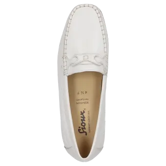 Fashionable ladies' loafer made of ultrasoft lamb nappa in F-width fitting. Women's shoes made by hand for maximum comfort. Calfskin lining and soft, fully padded calfskin-covered removable insole. Soft and fine rubber sole with a flat heel. A typical women's moccasin by Sioux.