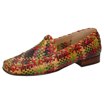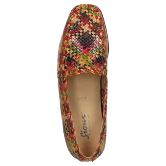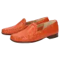 Women's flat loafers made of soft, braided goatskin and featuring edging at the shaft and tongue. Unlined women's shoe, best worn barefoot. Special feature: the shaft is intricately braided by hand on the lasts to maintain an ideal shape. Soft, padded calfskin insole. Soft, fine rubber sole with a slight heel pitch and F-width fitting.