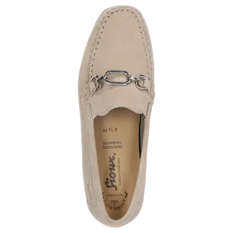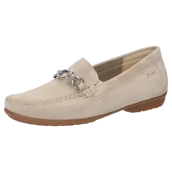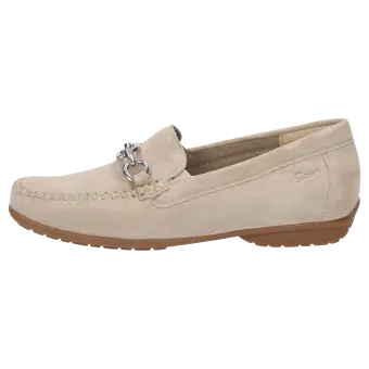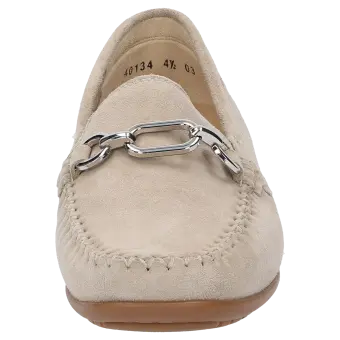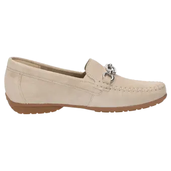 Women's sporty-looking, moccasin-style slip-on in a comfort width (H) offers an enhanced fit. It is crafted from elegant goat suede and features a removable insole and comfortable rubber sole. The timeless metal trim makes this model a classic.
