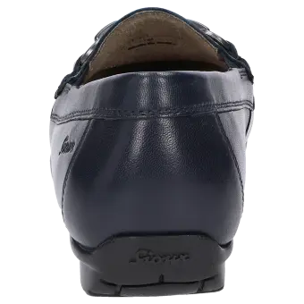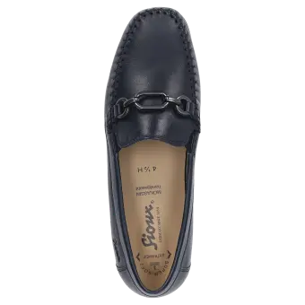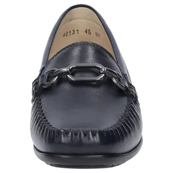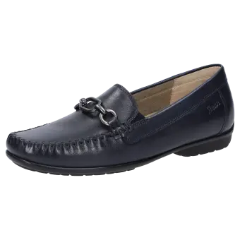 Women's sporty-looking, moccasin-style slip-on in a comfort width (H) offers an enhanced fit. It is crafted from supple lamb nappa leather and features a removable insole and comfortable rubber sole. The timeless metal trim makes this model a classic.