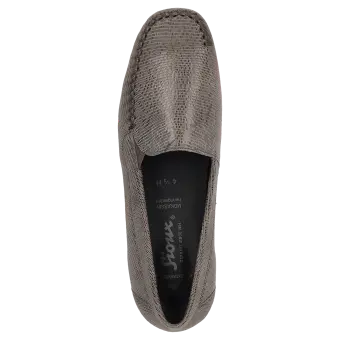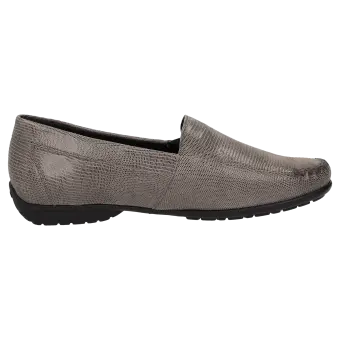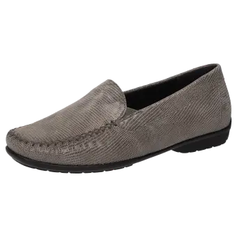 This slipper impresses with its stylish design while offering the highest level of comfort. The upper made of soft suede leather with an elegant reptile print makes this moccasin a real eye-catcher. The extra-wide fit (H width) provides more space and is ideal for people with wider feet. The flexible rubber sole ensures secure footing and completes the high-quality look.