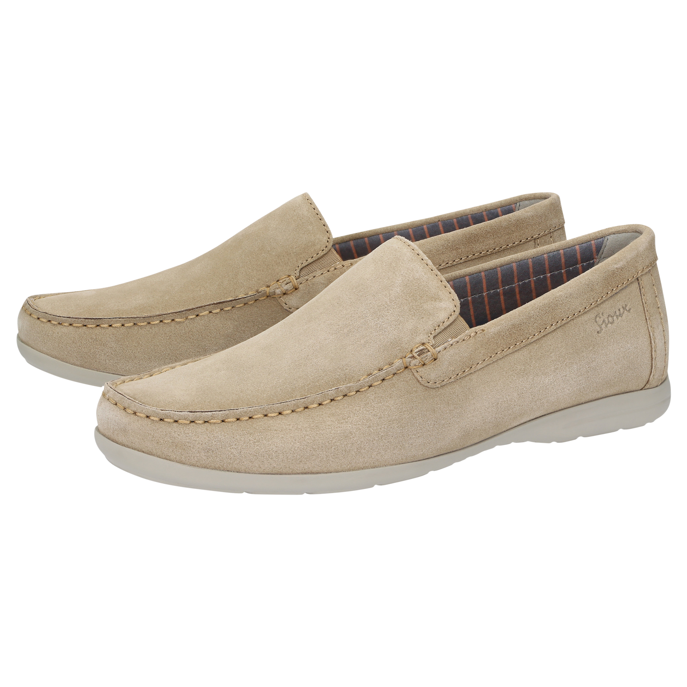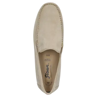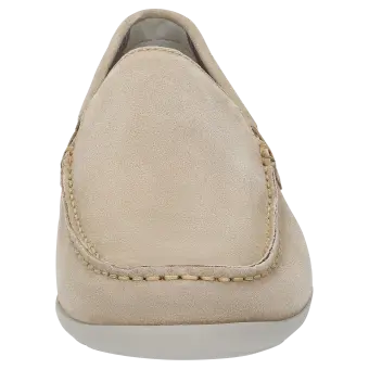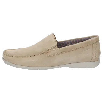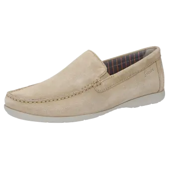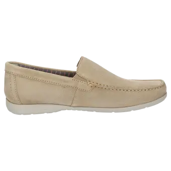 Men's moccasin-style loafer made of top-quality calf suede, available in a standard G width, is lined with a lightweight summery fabric. The leather-covered cushioned and removable insole can be replaced with a bespoke one. The elasticated inserts at either side of the tongue make it easy to put on and take off the shoe as well as enhance the fit. The lightweight rubber sole makes this model perfect for wearing throughout the day.