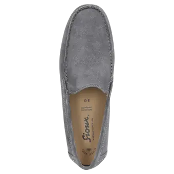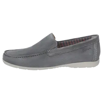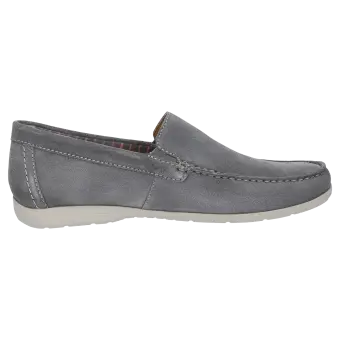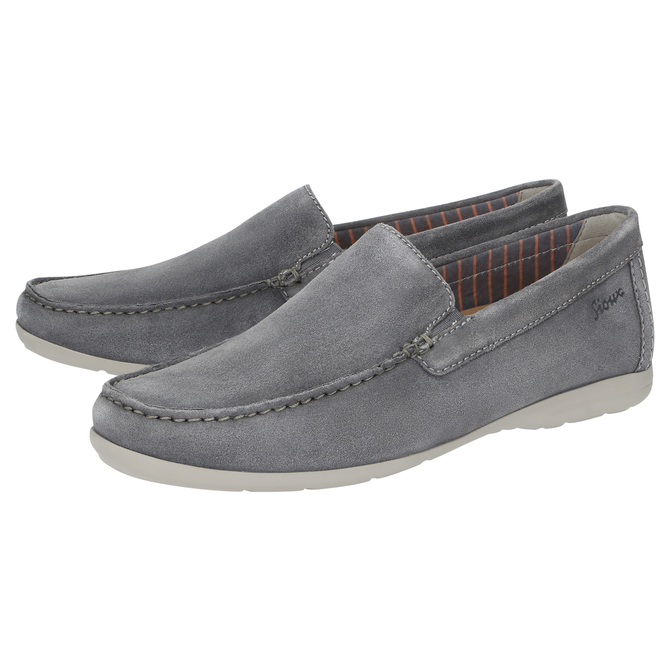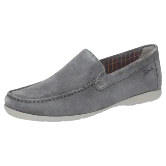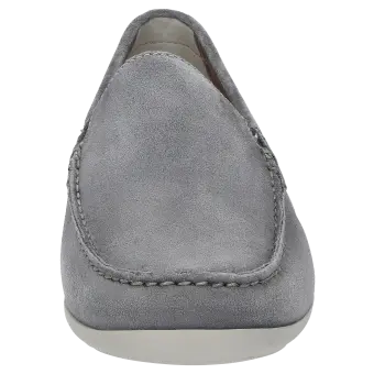 Men's moccasin-style loafer made of top-quality calf suede, available in a standard G width, is lined with a lightweight summery fabric. The leather-covered cushioned and removable insole can be replaced with a bespoke one. The elasticated inserts at either side of the tongue make it easy to put on and take off the shoe as well as enhance the fit. The lightweight rubber sole makes this model perfect for wearing throughout the day.