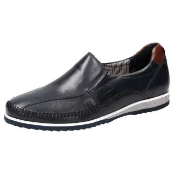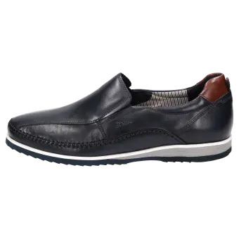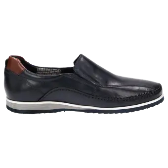 Men's lightweight moccasin made of natural calfskin with an eye-catching look and elasticated inserts at the side of the vamp for a perfect fit. Lined with lightweight fabric and equipped with a leather-covered removable insole that can be swapped with your own insole. This men's slip-on shoe is rounded off perfectly with a lightweight rubber sole.