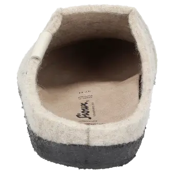 Sioux slipper for women in extra width H with high wearing comfort. Handcrafted from textile felt with a loose insole. A special dipping process gives our slipper an outsole of slip-resistant latex at the bottom. A beautiful footwear for cozy hours at home.