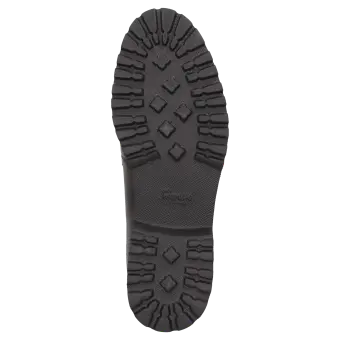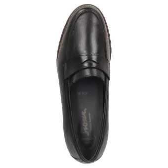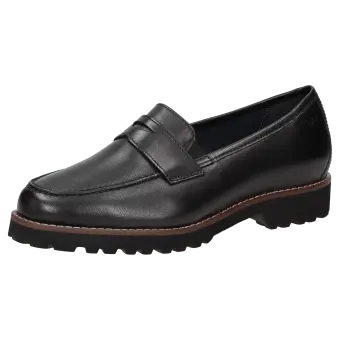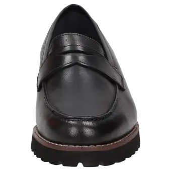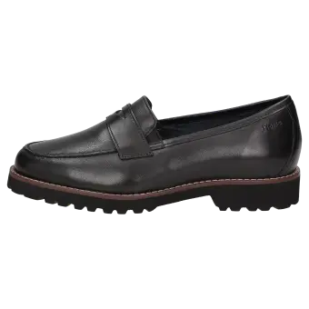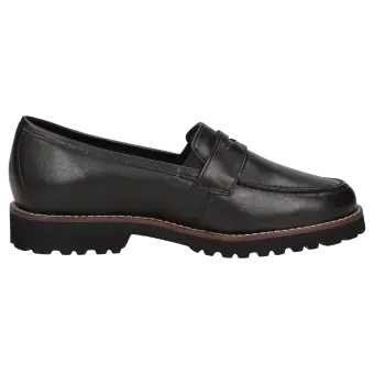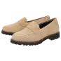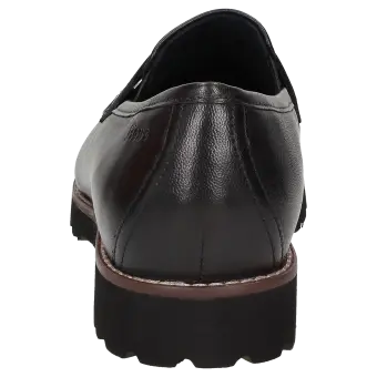 Women's college-style looking slip-on in a comfort width (H) featuring a penny-loafer trimming. Made of fine-grained nappa lambskin leather; leather-lined with stretch fabric lining in the forefoot. These are bunion-friendly shoes! Removable, leather-covered insole with soft cushioning - can be replaced with a bespoke insole. Cleated lightweight rubber sole in an autumnal look and a striking leather welt.