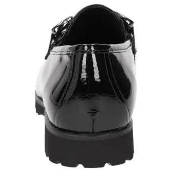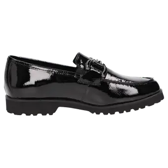 This slipper impresses with its elegant upper made of grained calf patent leather, which ensures a stylish appearance with its shiny lacquer look. The fashionable rubber sole provides pleasant cushioning and secure grip with every step. Thanks to the extra width (H-width), the shoe offers more space and is therefore ideal for people with wider feet.