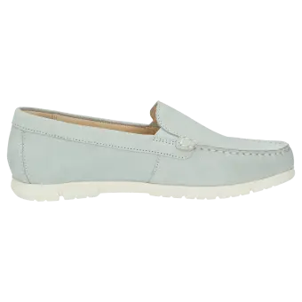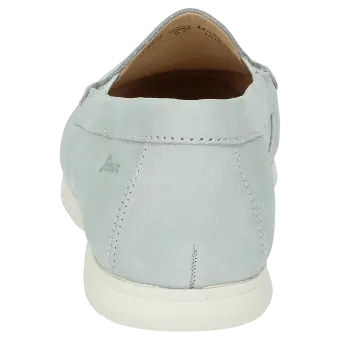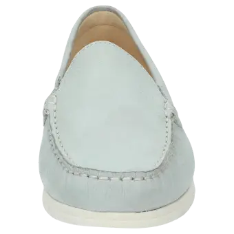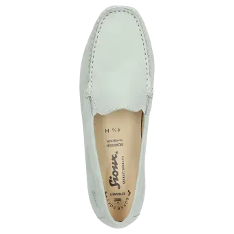 Women's functional and sporty, flat, moccasin-style shoe in a comfort width (H). Crafted by hand from milled calf leather and lined with leather, this model features small elasticated inserts on either side of the tongue for an enhanced fit. The full-length, leather-covered padded insole can be replaced with a bespoke one. This shoe boasts maximum comfort and ensures good traction, thanks to the rubber sole.