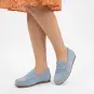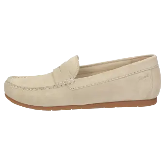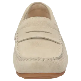 This ladies' slipper impresses with its elegant moccasin look and fine calf suede. The premium velour material provides a particularly pleasant wearing experience and enhances the shoe's stylish appearance. The standard width (G width) ensures an optimal fit, while the flexible rubber sole allows for light and secure rolling of the foot. Inside, the slipper delights with a removable footbed, allowing the use of custom insoles if desired - for a personalized comfort experience. The meticulous workmanship makes this model an ideal choice for anyone who values comfort and quality in everyday life.