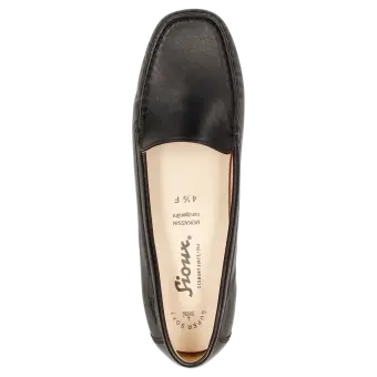 This women's best-selling casual moccasin-style slip-on comes in an F-width fit. The shoe is crafted from fine-grained nappa leather from lambskin and is leather-lined. Added comfort is provided by the removable, cushioned insole and summery, lightweight, rubber sole. A top favourite among our female customers!