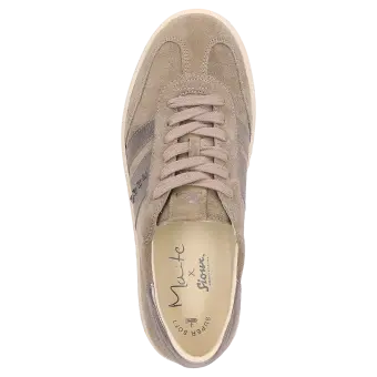 This sneaker, created in collaboration with Maite Kelly, impresses with its fashionable look and high-quality craftsmanship. The upper is made from a fine leather combination, providing a stylish yet sporty appearance. The standard width (G width) ensures optimal comfort with every step, while the flexible rubber sole offers reliable grip.