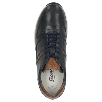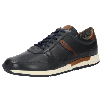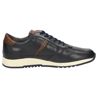 Men's comfy trainers made of top-quality calf leather with a glossy finish. This model features a summery mesh fabric lining and provides good support to the foot, thanks to the padded collar and raised heel. The removable, leather-covered insole can be replaced with a bespoke one. This shoe is exceedingly comfortable as a result of the lightweight, cushioning shell sole with a rubber tread.
