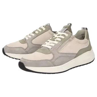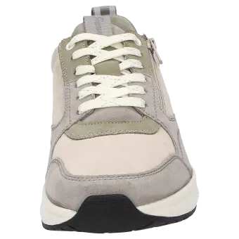 Men's crafted trainer with many interesting details. The raised section at the heel enhances the fit, and the zip at the side makes it easier to put on. This trainer boasts top-quality calf suede combined with stretch lamb nappa leather to make the lace-up in a very broad width (J) a very special model. It is lined with a fine mesh fabric around the collar and functional stretch fabric in the forefoot area. The leather-covered insole can be replaced with a bespoke one, and the striking sole, comprising cushioning EVA and a rubber tread, round off this model perfectly.