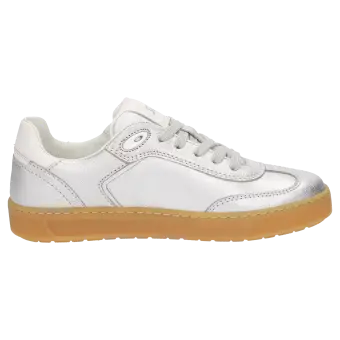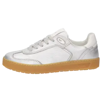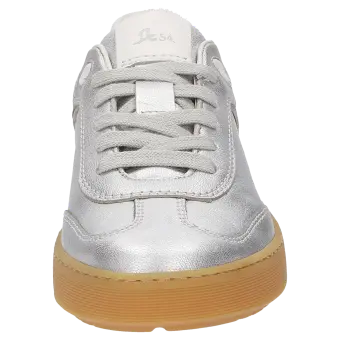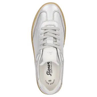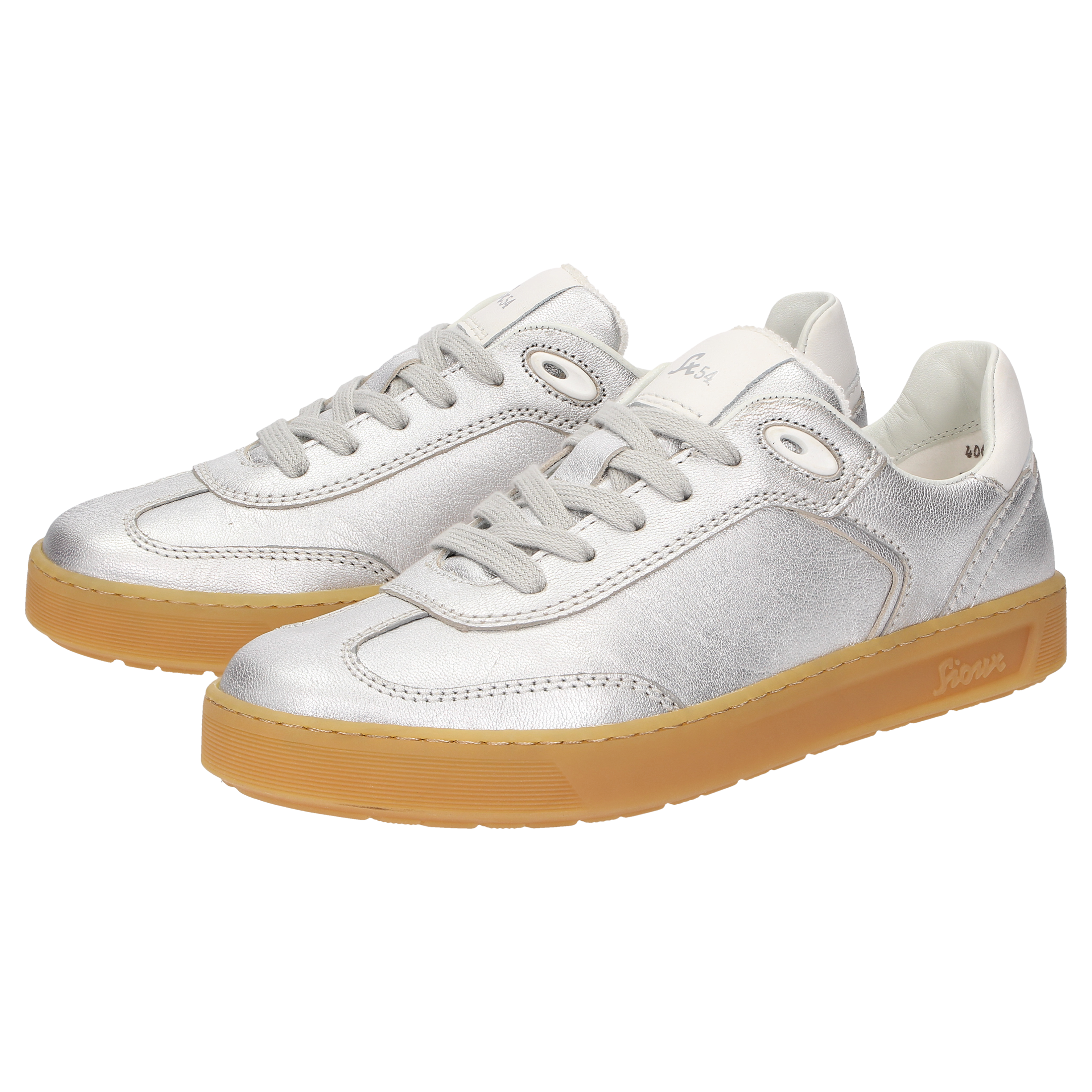 Women's trainer from Sioux, in the style of a tennis shoe, is ideal for combining with everyday wear. The metallic goat leather and the craftsmanship that has gone into creating the shoe ensure maximum comfort. This model is extremely lightweight, flexible and comfortable, thanks to the special California construction technique. It features a summery terry fabric lining, and there is soft cushioning in the removable leather insole and around the shoe collar. The details, including the weathered look of the sole and the visual aspects on the heel, are characteristic of this trainer.