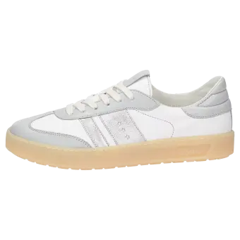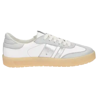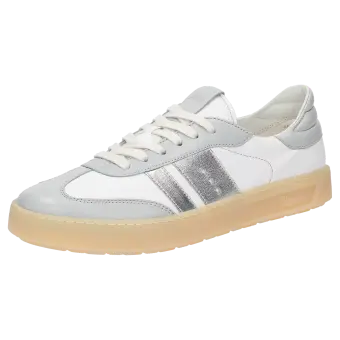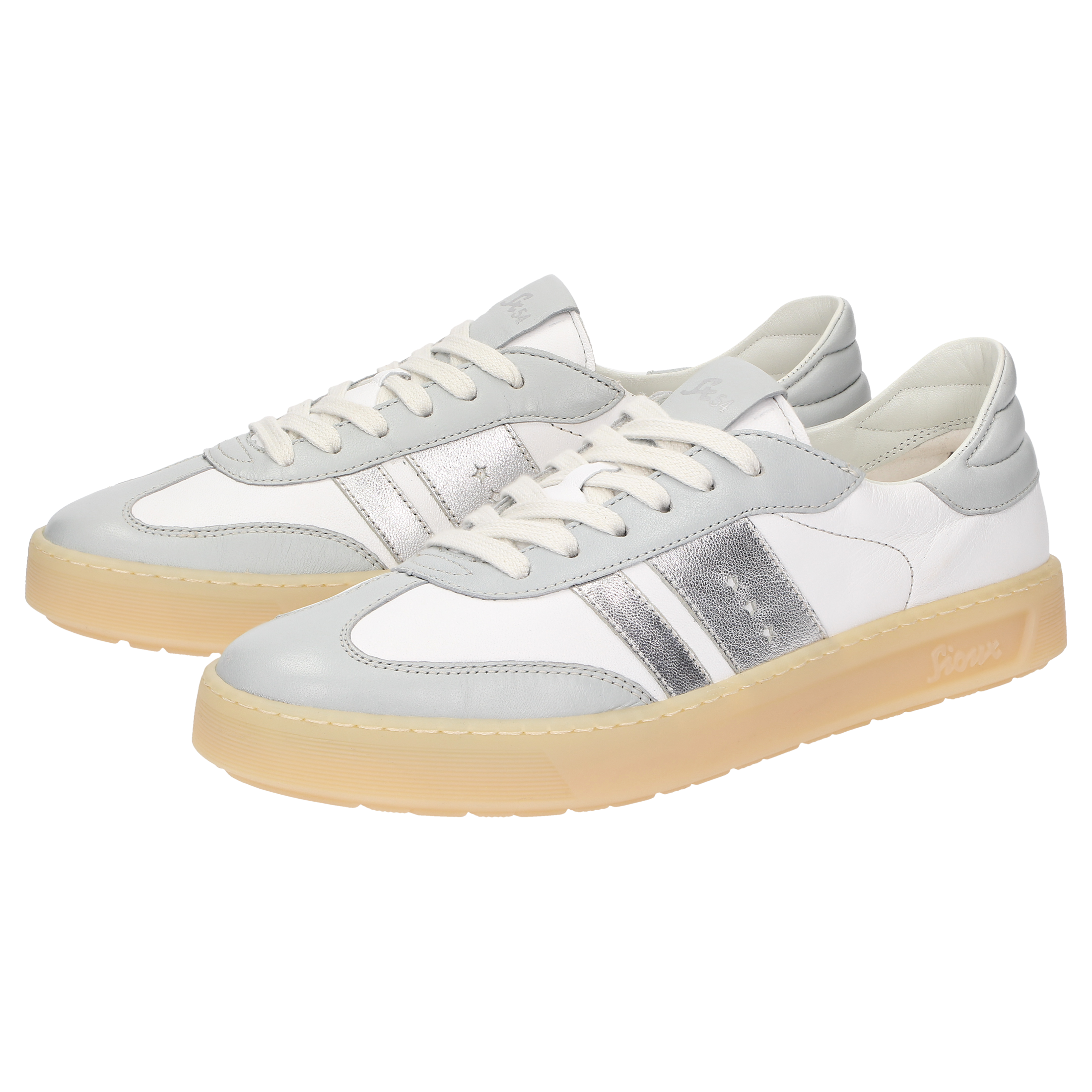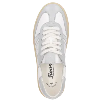 Women's trainer from Sioux, in the style of a tennis shoe, is ideal for combining with everyday wear. The mix of various lamb nappa leathers used for the upper and the craftsmanship in the shoe construction ensure ultimate comfort in every step. This model is extremely lightweight, flexible and comfortable, thanks to the special California construction technique. It features a summery terry fabric lining, and there is soft cushioning in the removable leather insole and around the shoe collar. The skillful details, including the rubber sole that is sewn onto the shoeand the visual aspects on the heel, are characteristic of this trainer.