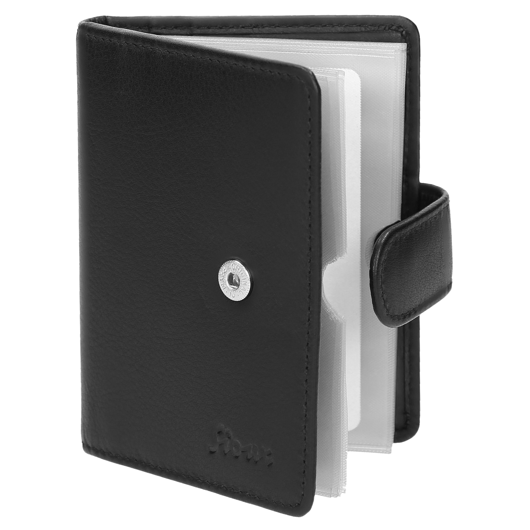 Hochwertiges Kreditkartenetui aus feinem Kalbleder für 4 Karten im gängigen Kartenformat. Mit zwei zusätzlichen Einschiebefächern lässt sich die Anzahl der Karten um 6 bzw. 12 erweitern - also auf maximal 16 Karten! Das Etui wird mit einem praktischen Druckknopfverschluss geschlossen.