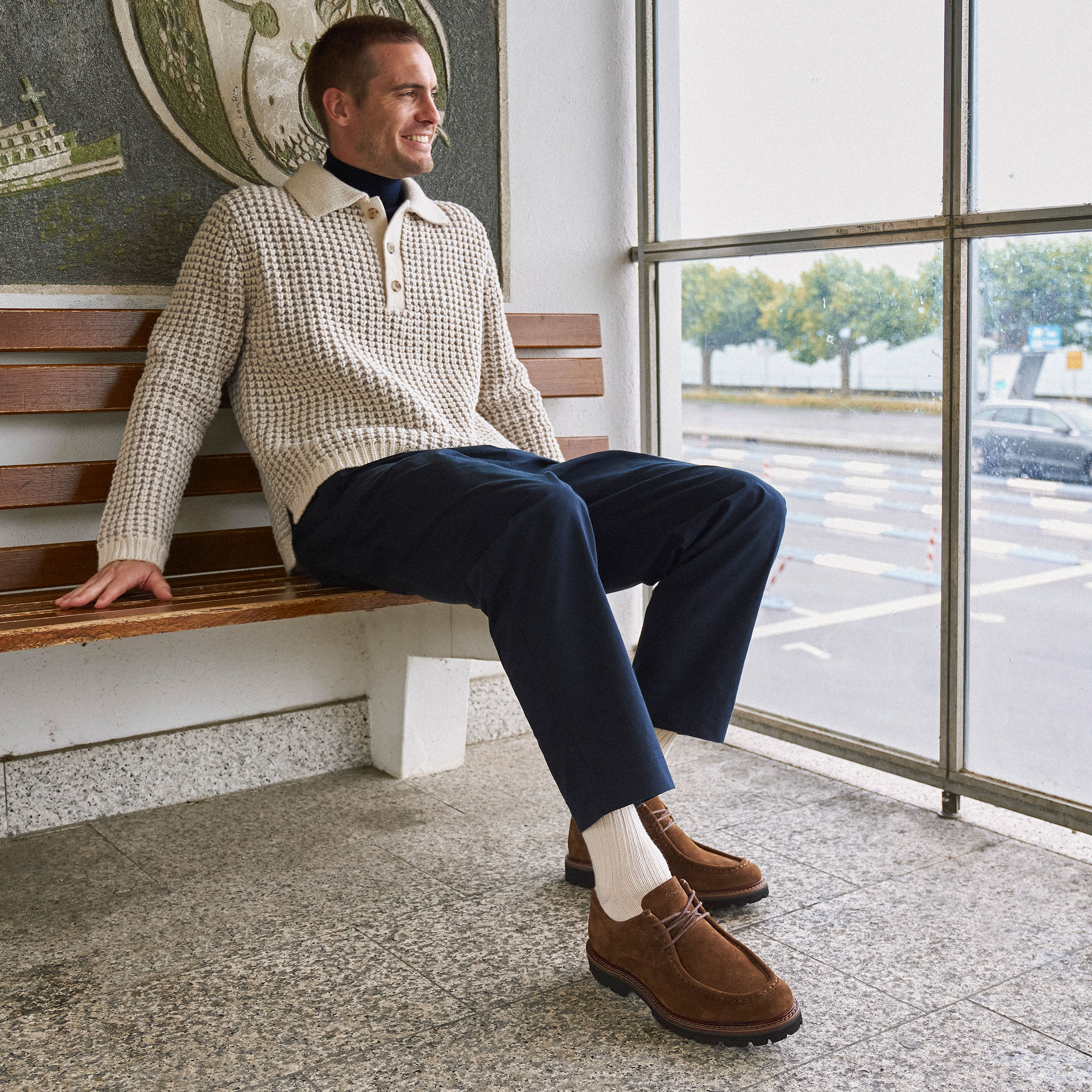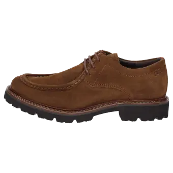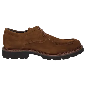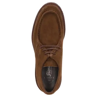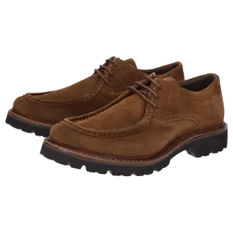 Chaussure à lacets casual en cuir velours de veau huilé avec une couture bourrelet marquante sur l'empeigne. La semelle intérieure tendue de cuir est amovible de manière à pouvoir la remplacer par une semelle orthopédique. La semelle extérieure profilée en caoutchouc assure de bonnes sensations en marchant. La chaussure idéale pour tous ceux qui recherchent le confort !