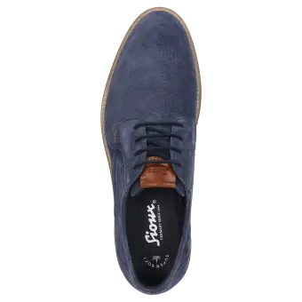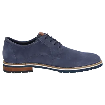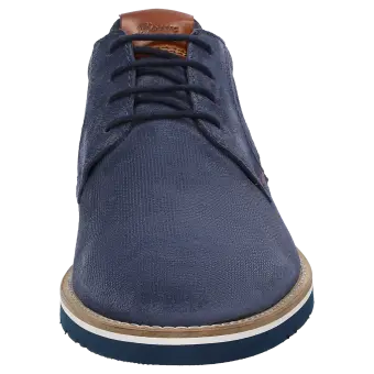 Chaussure à lacets tendance pour homme en cuir velours de veau gaufré avec contour de tige légèrement matelassé. Doublure cuir/tissu avec première de propreté au revêtement cuir. La semelle extérieure profilée en caoutchouc léger assure de bonnes sensations en marchant. La chaussure idéale pour tous ceux qui recherchent le confort !