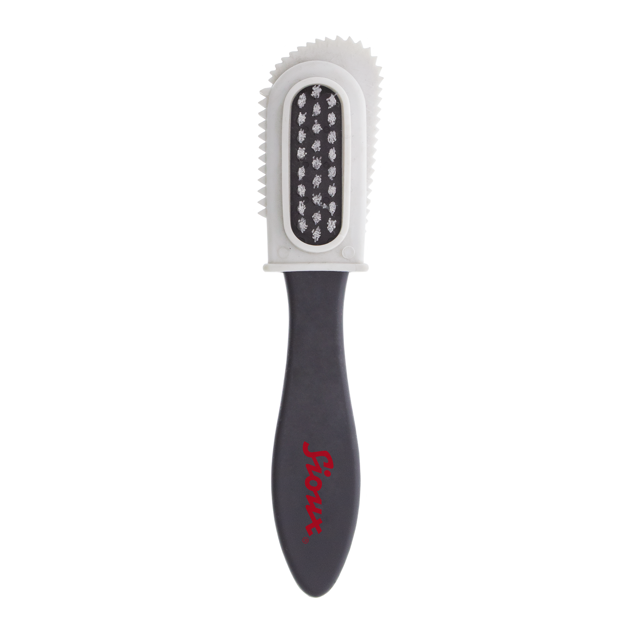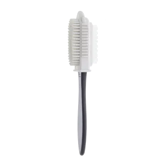 Brosse douce pour cuir rugueux avec poils en nylon et deux arêtes de nettoyage. Surface agrandie avec picots en caoutchouc permettant de redonner au cuir rugueux son aspect initial. Corps en plastique noir avec poignée ergonomique.