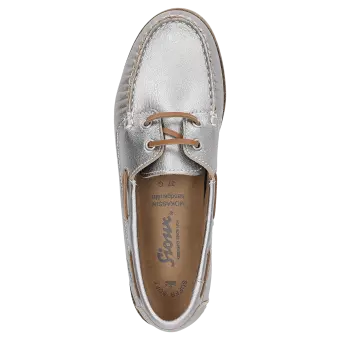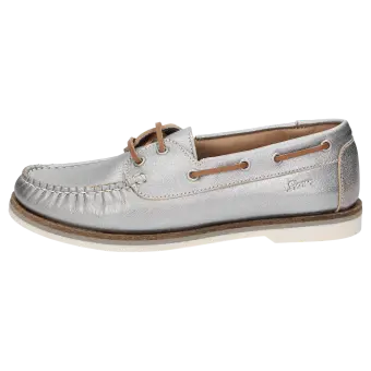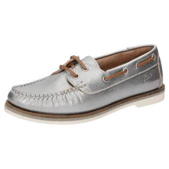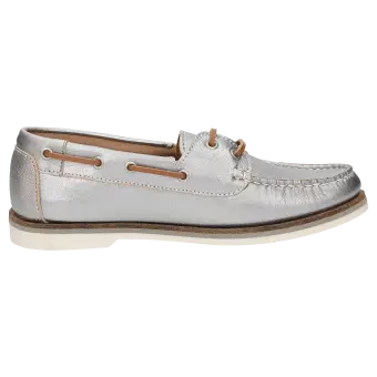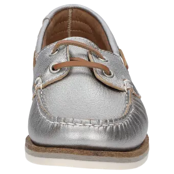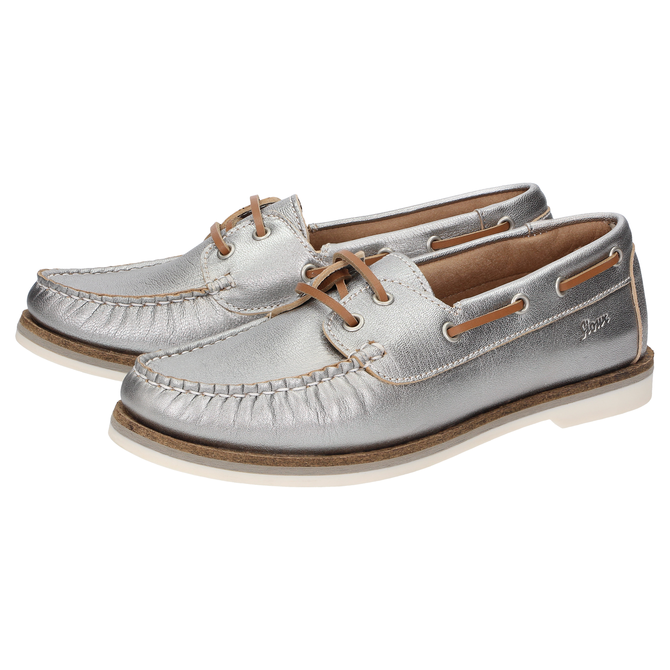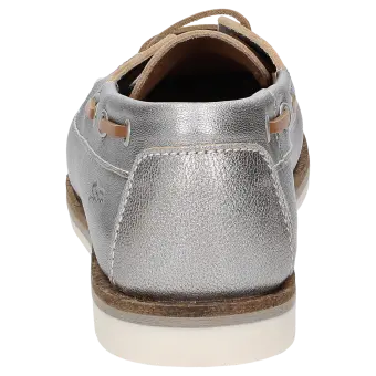Chaussure à lacets non doublée pour femme à l'allure sportive avec son style dockside tendance en cuir de chèvre métallisé. La première de propreté en cuir bien rembourrée peut être remplacée par une semelle sur mesure. La semelle extérieure souple et fine en caoutchouc avec un talon légèrement surélevé apporte la touche finale au modèle et la largeur G confortable assure une grande liberté de mouvement au niveau des orteils.