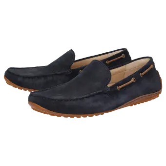 Mocassin d'été casual pour homme à l'allure indémodable, en velours de veau fin. Ce modèle possède une doublure en microfibre pour l'été et il est fabriqué de manière artisanale en largeur G standard. La semelle extérieure légère en caoutchouc, remontant au niveau du talon pour la conduite, et la semelle intérieure amovible au revêtement cuir assurent un grand confort pour marcher.