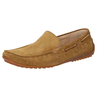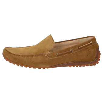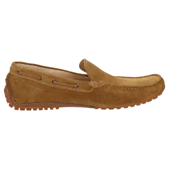 Mocassin d'été casual pour homme à l'allure indémodable, en velours de veau fin. Ce modèle possède une doublure en microfibre pour l'été et il est fabriqué de manière artisanale en largeur G standard. La semelle extérieure légère en caoutchouc, remontant au niveau du talon pour la conduite, et la semelle intérieure amovible au revêtement cuir assurent un grand confort pour marcher.
