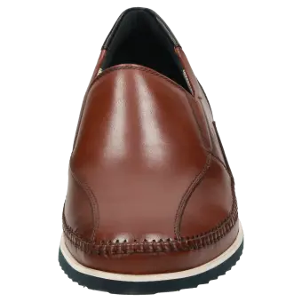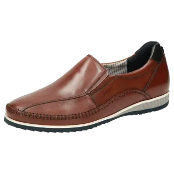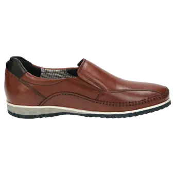 Mocassin léger pour homme en cuir de veau naturel au look original avec des élastiques latéraux au niveau du contrefort pour un chaussant parfait. Doublé en tissu léger et doté d'une semelle ergonomique amovible revêtue de cuir et facile à remplacer par une semelle orthopédique. Ce loafer pour homme est parfaitement complété par la semelle très légère en caoutchouc.
