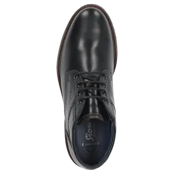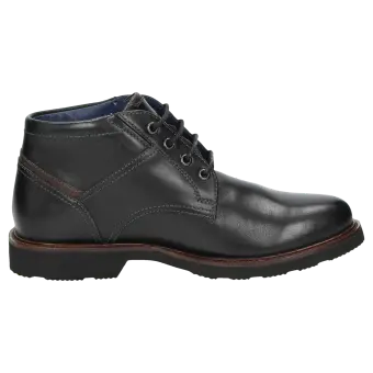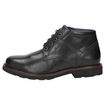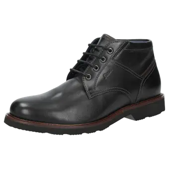 Een sportieve metgezel voor de hele dag, in meerwijdte H: heren-veterbootie van glanzend kalfsleer, met los wisselvoetbed - ook geschikt voor de eigen inlegzolen. Met leren voering en functioneel stretchmateriaal rond de voorvoet. De geprofileerde rubberzool zorgt voor een goed loopgevoel. Perfect voor iedereen die waarde hecht aan comfort!