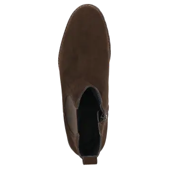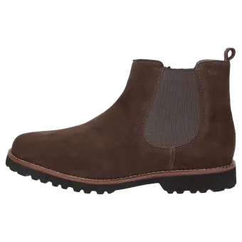 Dames-Chelsea-boot van Sioux, in comfortabele extrawijdte H, met elastiek en rits opzij en een lus aan de hiel. Vervaardigd van fijn lamssuède. Gevoerd met leer en met stretchvoering rond de voorvoet. Geschikt voor hallux-valgus-voeten! Uitneembare, met leer beklede dekzool, met zachte demping - ook geschikt voor de eigen inlegzool. Geprofileerde, herfstachtig ogende lichte rubberen zool met rand.