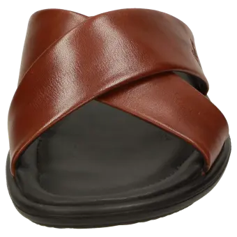 Zomers lichte heren-instapper met gekruiste wreefbandjes van zacht lamsnappa, met zachte PU-zool. De ideale begeleider voor de mooiste tijd van het jaar ... en de zomer.