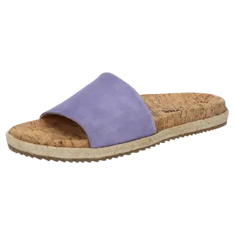 Klassieke slipper in G-wijdte met een eenvoudig bandje van fijn kalfssuède dat aan de binnenzijde gevoerd is met microvezel. Anatomisch kurk-voetbed en een licht geprofileerde rubberzool ronden deze zomerschoen op beproefde wijze af.