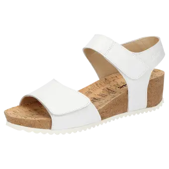 Comfortabele sandaal van fluweelzacht lamsnappa, met kurk-voetbed. Perfecte pasvorm dankzij twee variabele klitsluitingen - een comfortabele sandaal voor de hele dag.