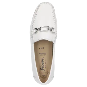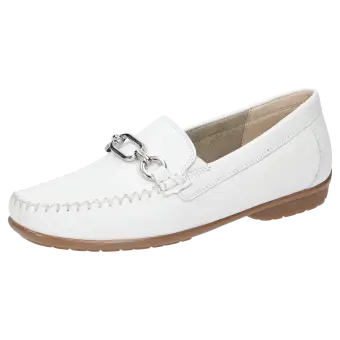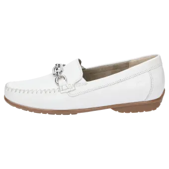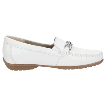 Sportieve dames-mocassin in wijdte H, met beproefde pasvorm. Ambachtelijk vervaardigd van fluweelzacht lamsnappa, met een gemakkelijke rubberzool en een wisselvoetbed. Met zijn tijdloos elegante, metalen sierelement is dit model een klassieker.