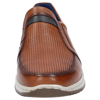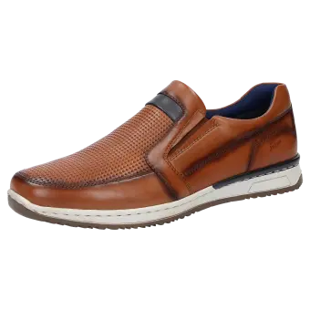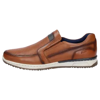 Comfortabele heren-instapper van fluweelzacht lamsnappa met zomerse preging. Dit model is gevoerd met een textiel netmateriaal en biedt een optimale pasvorm dankzij de gevoerde schachtrand en de hooggetrokken hiel. De uitneembare, met leer beklede inlegzool kan door een eigen inlegzool vervangen worden. Dit model wordt afgerond met de markante zool met rustieke naad.