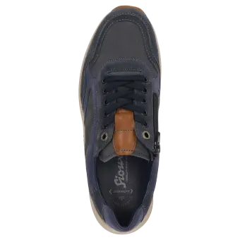 Deze sneaker is de ideale keuze voor heren die belang hechten aan comfort en een moderne uitstraling. Het bovenwerk van hoogwaardige lederen combinatie voelt prettig en is zeer duurzaam. Dankzij de brede pasvorm met extra J-breedte is de schoen bijzonder geschikt voor mensen met brede voeten en biedt hij een ontspannen draaggevoel. De flexibele rubberzool zorgt voor een veilige stap en geeft een aangenaam licht loopgevoel. Van binnen overtuigt de sneaker met een verwisselbaar voetbed, waardoor je eenvoudig je eigen inlegzolen kunt gebruiken voor extra comfort. Hoogwaardige materialen en een zorgvuldige afwerking maken deze sneaker tot een betrouwbare metgezel voor elke dag - perfect voor wie waarde hecht aan comfort en stijl.