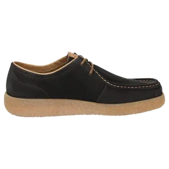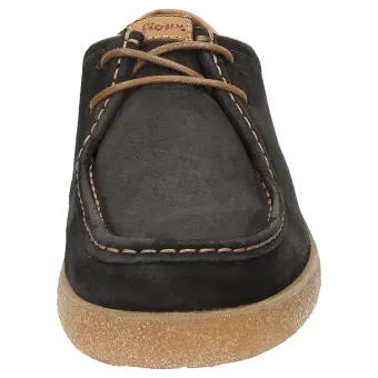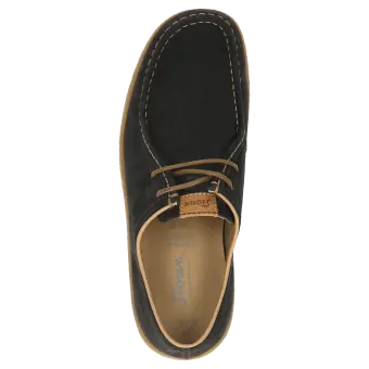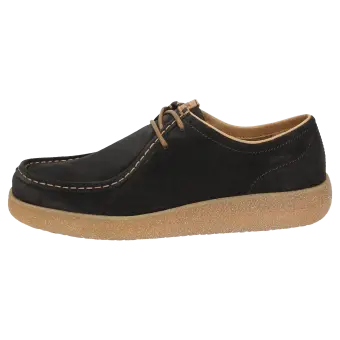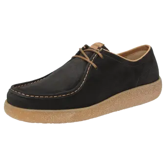 De moderne interpretatie van de Grashopper: sportieve veterschoen van gewaxt kalfssuède met een rustieke rubberzool in crêpe-optiek. De voering en bekleding van de dekzool zijn gemaakt van moderne microvezels. De comfortabele schoenwijdte G zorgt voor optimale teenvrijheid en het zacht gevoerde wisselvoetbed kan worden verwijderd en vervangen door de eigen inlegzool.